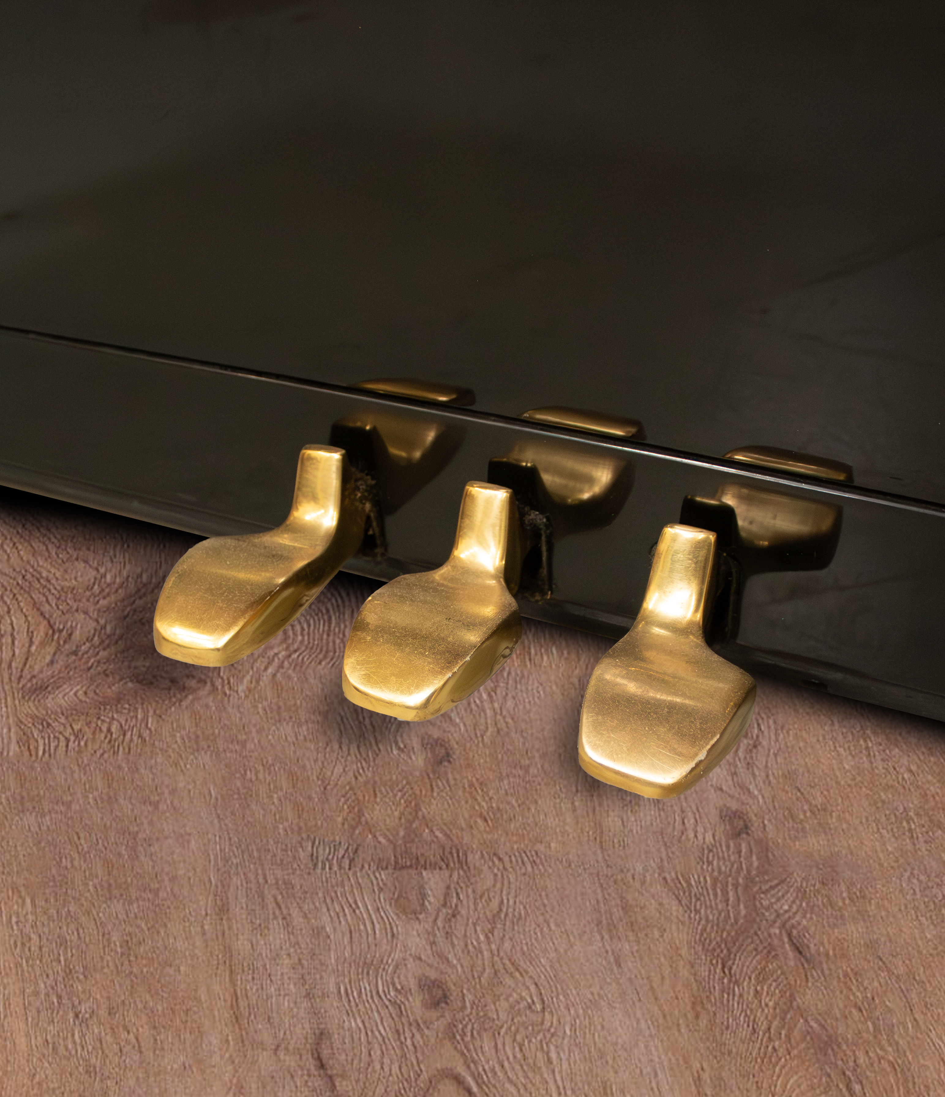 3 pédales en laiton (forte, douce, sourdine)