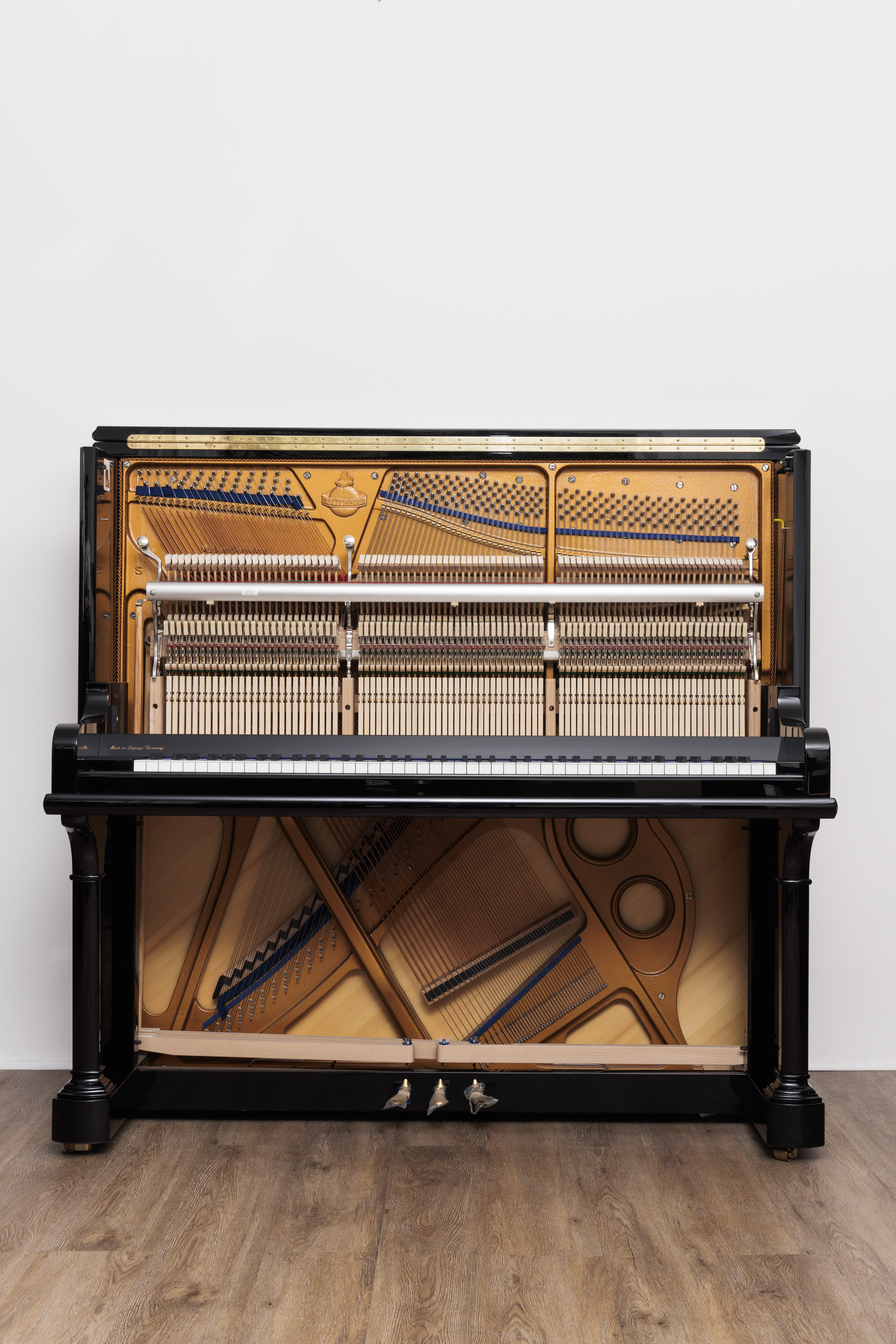 c’est le piano droit le plus haut du monde ! le développement harmonique généré par les 145 cm de ce piano orchestral sont équivalents voire supérieurs à bien des pianos à queue. autrefois appelé piano droit de concert, ce type d’instrument possède bien évidemment des qualités en rapport avec son gabarit demesuré. comme toute la gamme bluthner, le romantisme prime et une tessiture douce octroie au pianiste une large palette de nuances dans les registres doux et très doux. le murmure est aisé et l’interprétation gagne en subtilité. le forte et le ff sont, faut-il le dire compte tenu de sa taille magistrale, d’une puissance décoiffante. mécaniquement, la longueur des touches, incroyable pour un piano droit, permet un balancier très long et une précision redoutable sous les doigts, parfaitement relayée par une mécanique renner de haute qualité. une pédale tonale est disponible en option. enfin, esthétiquement, même si sur le papier ses dimensions semblent peu compatibles avec la finesse, il jouit pourtant d’une élégance très raffinée grâce à des finitions impeccables, de nombreuses moulures et autres chanfreins. cerises sur le gâteau, le panneau vertical supérieur est équipé d’une trappe acoustique permettant de hausser le volume sans avoir à ouvrir le couvercle supérieur et le porte partition vous réserve de nombreuses surprises…