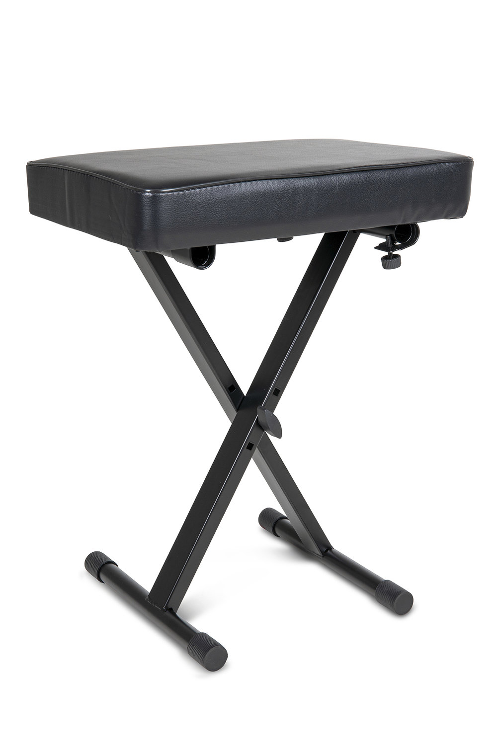 Une banquette en X, à croisillons, conçue pour les pianos numériques.