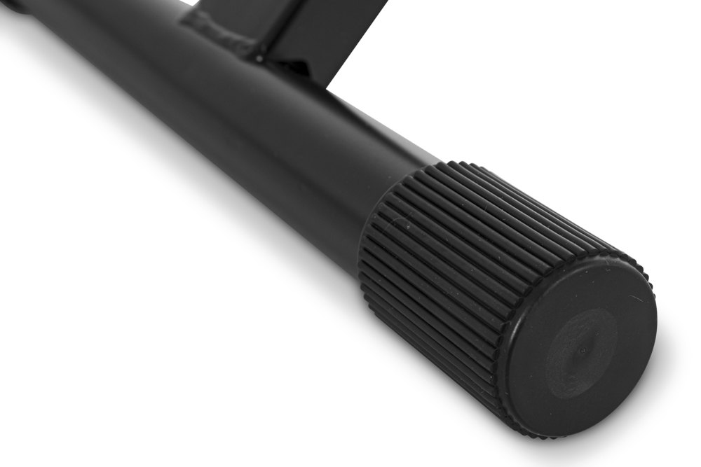 Une banquette en X, à croisillons, conçue pour les pianos numériques.