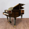 Ce très beau quart queue Kimball d’origine nord américaine, de conception autrichienne Bösendorfer, est une vraie aubaine pour qui souhaite un piano à queue d’excellente qualité, de réputation incontestable, à prix modéré. En effet datant de 1974, il est issu de l’âge d’or de la fabrique qui fut créée pour les pianos en 1887 – l’entreprise qui date de 1857 construisait au départ exclusivement des orgues – et collabora jusqu’à son extinction en 1996, dans une recherche constante d’amélioration technique comme harmonique, avec les plus grands fabricants mondiaux tels steinway et bechstein, allant même à racheter en 1966 la prestigieuse usine autrichienne Bösendorfer qui contribua fortement aux conception et fabrication de cet exemplaire. le cadre du 175 de la maison autrichienne a d’ailleurs servi de base à ce piano d’occasion qui fut utilisé ses toutes premières années puis conservé très longtemps sans nullement être utilisé. il dispose d’une réserve de puissance étonnament surprenante (même pour un quart de queue), d’une belle densité acoustique favorisant l’interprétation de la nuance qui s’obtient naturellement, sans surcharge d’efforts. mécaniquement, sa mécanique à double échappement procure une sensation de précision très appréciable et permet un jeu d’une grande vélocité. le pianiste qui posera les doigts sur ce clavier pourra goûter aux joies de l’interprétation quel que soit le répertoire envisagé. la sonorité est très ouverte, profonde dans les basses, claire et enlevée dans les aigues, typiquement américaine. une grosse révision générale a été entreprise pour rendre à la mécanique, au clavier et à la sonorité toute l’homogénéité et la rigueur dont ils doivent se prévaloir pour bénéficier de notre garantie décennale. enfin, le meuble à la finition noir brillant, plutôt bien conservé, aura bénéficié des soins experts de notre ébéniste pour une apparence à la mesure de la notoriété de son nom. une occasion en or !