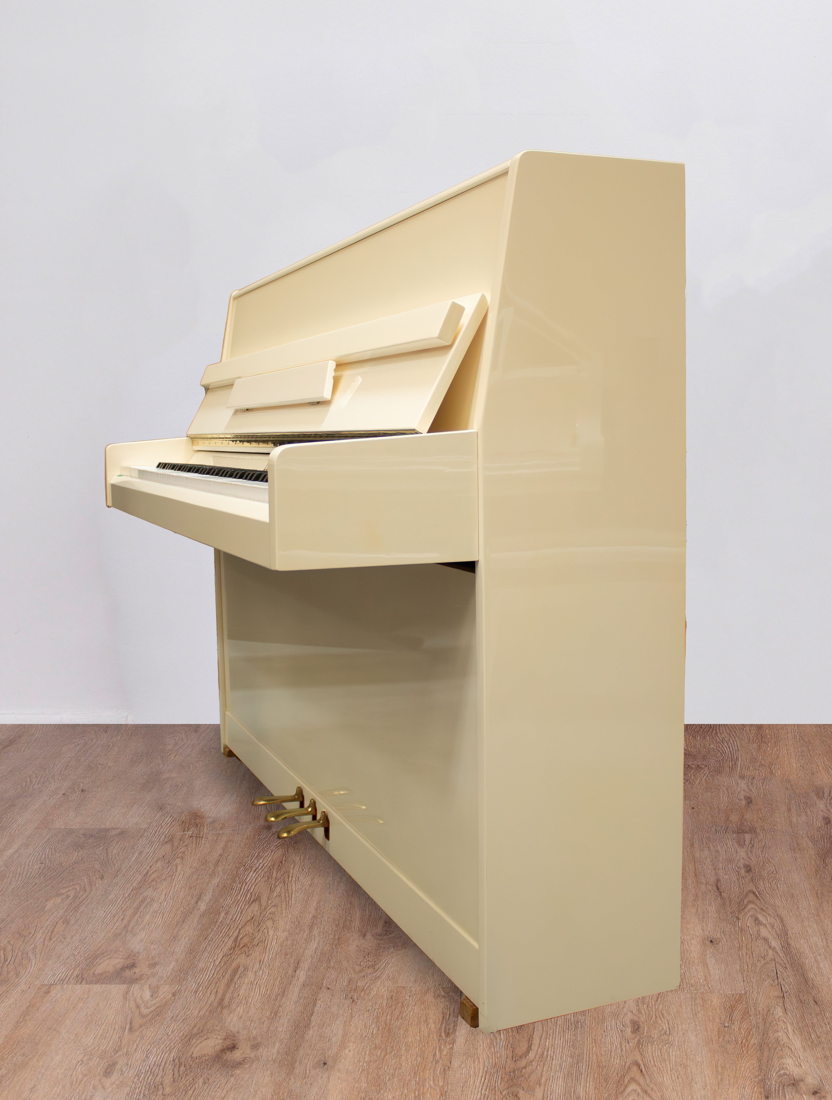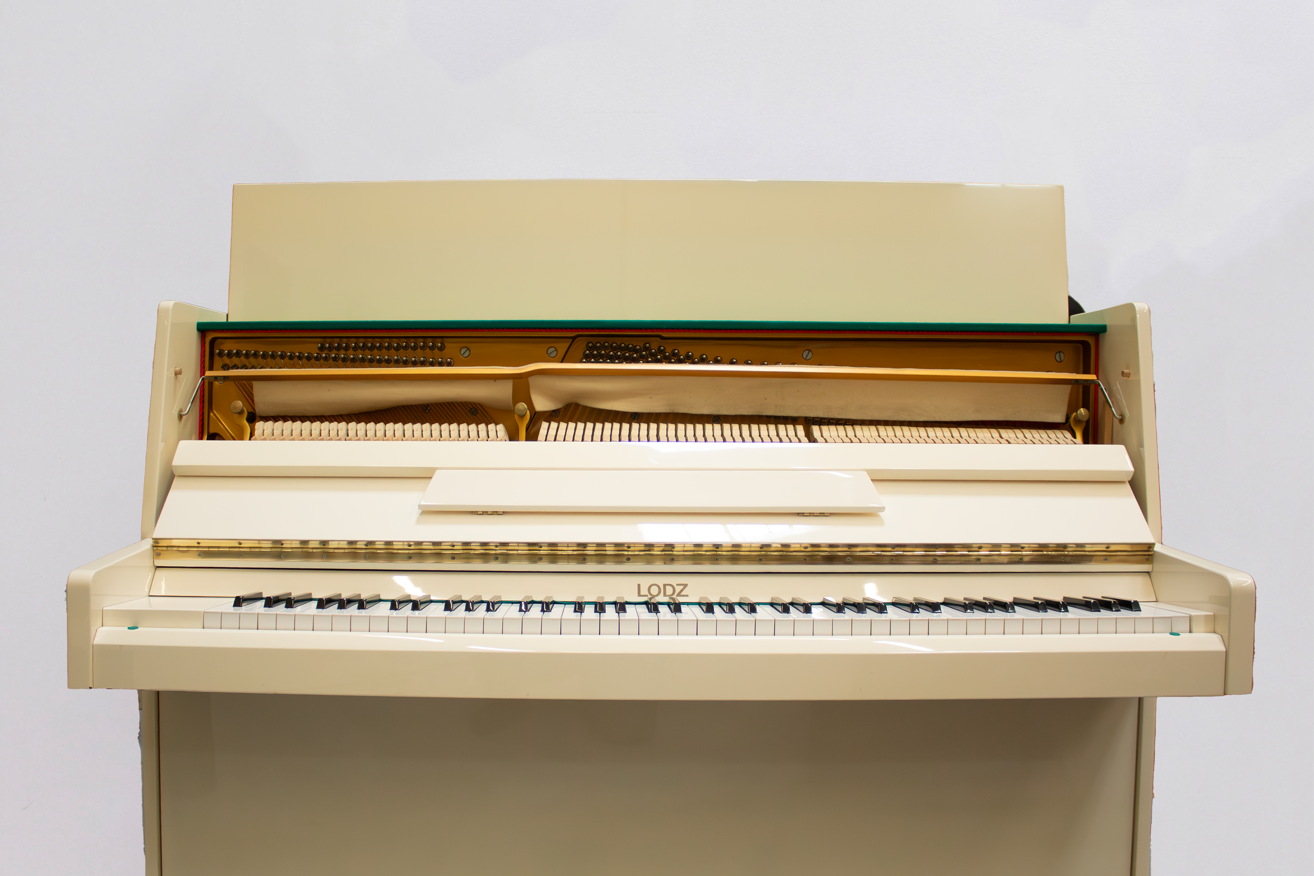 Comme pour ses cousins tchèques et Petrof en particulier, la fabrique Lodz a voulu ici ce qui se fit de mieux en matière de fabrication avec comme objectif de concurrencer les grands fabricants européens. le diagnostic technique nous indique que le piano a été joué modérément et parfaitement stocké. on y trouve donc sans surprise des feutres peu marqués et très propres, sans traces d’usure assurant au piano une durée de vie encore très longue. le clavier est ferme mais sans excès, garant d’un bon travail des doigts pour les débutants ou les pianistes déjà aguerris. la sonorité est européenne, plutôt veloutée sans être étouffé. très polyvalent, précis et rapide sous les doigts, il conviendra parfaitement et pour de longues années à un pianiste désireux de ne pas avoir à changer de piano à court ou moyen terme. la qualité des matériaux comme par exemple ses marteaux Abel et la rigueur de la fabrication octroient à l’instrument de grandes qualités de jeu. certes, les basses et les médiums s’emploient à diffuser une sonorité dégagée est de belle densité, propre à des interprétations élaborées grâce à une palette de nuances surprenante. la tessiture est romantique au premier abord mais bien des pianistes amateurs de jazz ou de répertoires contemporains y trouveront matière à des interprétations subtiles, se laissant surprendre par les suggestions de jeu proposées par le piano. le meuble de finition blanc brillant est en très bon état général, sans coups ni rayures. nous avons démonté entièrement l’instrument pour un nettoyage complet dans les moindres détails. le réglage de la mécanique et du clavier, parties indissociables et complémentaires, ont été repris depuis le début selon les étapes immuables que nos techniciens connaissent bien. enfin, plusieurs accords de remise au ton et de stabilisation ont redonné sa vitalité à la sonorité. racheté un bon prix, nous le proposons à un tarif très séduisant. c’est là une alternative intelligente aux pianos neufs actuels de bien moindre qualité, pouvant contenter un débutant ne souhaitant pas changer de piano à court terme ou un joueur aguerri en recherche d’un instrument à un tarif abordable.