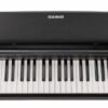 Ce piano Casio Privia PX-870 compact, bénéficie de nouvelles sonorités performantes, d’ouvertures acoustiques sur le couvercle, d’une amplification 2×20 W faisant vraiment la différence avec les modèles inférieurs. Les sensations du pianiste s’en trouve nettement améliorées. Le revêtement du clavier est très sensuel même si le toucher léger ne permettra pas un apprentissage idéal à défaut d’un contrepoids suffisant sous les doigts. Un pianiste souhaitant s’évader vers d’autres contrées musicales y trouvera un compagnon de jeu très performant, doté de fonctions pédagogiques comme l’enregistreur et de 18 sonorités de qualités variables. Les finitions générales sont impeccables et le rapport qualité / prix imbattable.