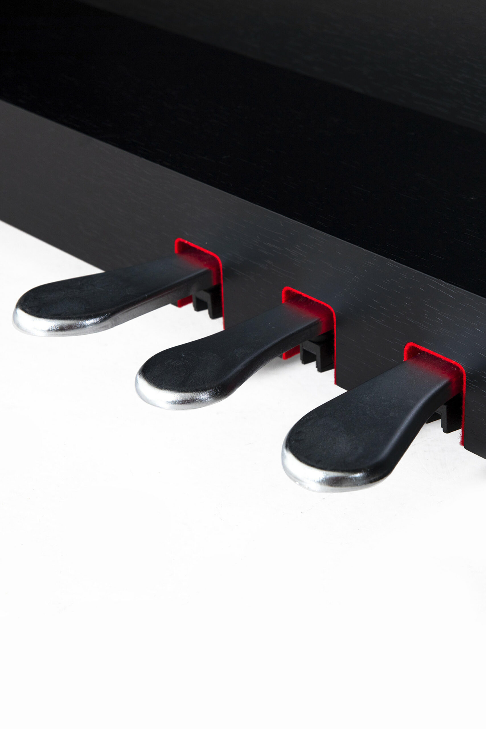 Ce piano Gewa UP 355 est adapté au pianiste confirmé, et conviendra également au pianiste débutant voulant travailler sa technique tout en formant son oreille. Disponible en noir, palissandre et blanc satinés, il offre une qualité sonore supérieure. En effet, son amplification de 2 x 30W, ainsi que les tweeters séparés expliquent cette qualité dans la restitution du son. Les finitions du meuble sont de qualité comme toujours chez Gewa, et le son de piano est échantillonné note par note, offrant ainsi de réelles capacités de nuances et de réalisme. Avec un toucher bois de qualité, les sensations de jeu sont saisissantes et permettent au pianiste de s’exprimer pleinement musicalement.