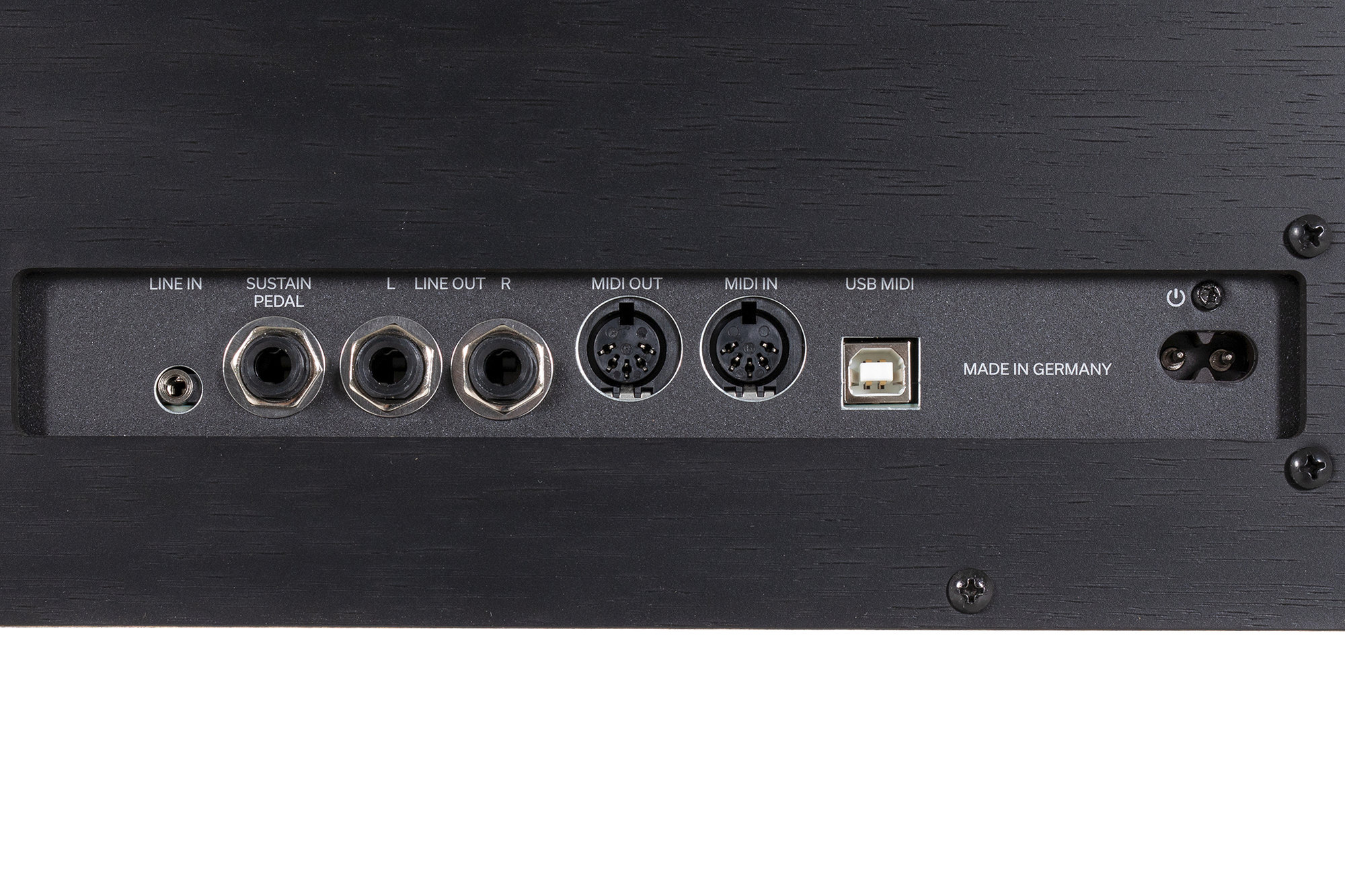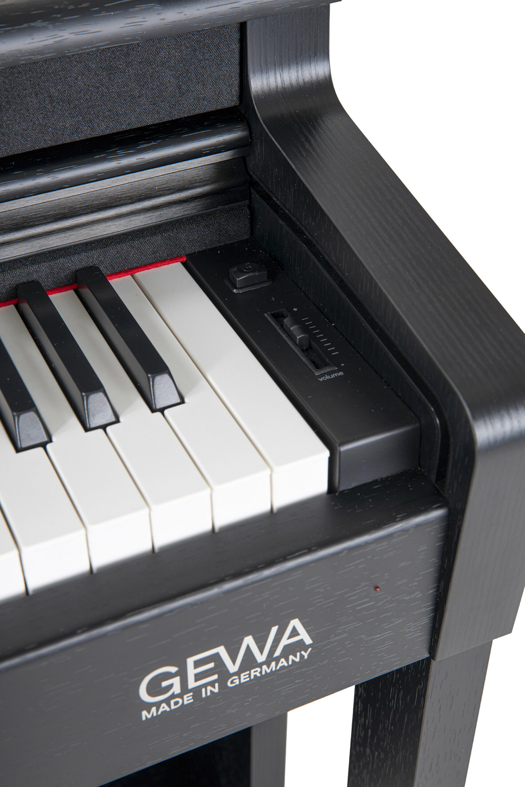 Grâce à l’interface mise à jour, son écran OLED design et ses touches Soft-Touch lumineuses, vous accéderez rapidement et facilement à tous les sons et toutes les fonctions importants. Éditez et enregistrez simplement les réglages de jeu et de son par le biais de votre smartphone ou de votre tablette. Avec l’application Gewa Piano Remote, vous avez accès aux sons, aux effets, aux paramètres du clavier, aux réglages du métronome, des layers, des splits, à la fonction d’enregistrement, à la bibliothèque mise à jour régulièrement, à la fonction Lesson,etc. Définissez un accès rapide et direct à vos sons préférés. Avec la fonction Favoris sur l’application Gewa Piano Remote, vous pouvez attribuer des noms à six présélections qui sont directement enregistrés dans le piano. Vous pouvez alors les consulter à tout moment, également sans connexion à l’application. Le système de haut-parleurs 2 x 30W à 2 voies du fabricant de haut qualité Visaton est alimenté par des amplificateurs de classe D haut de gamme, spécialement adaptés aux exigences de cet instrument. Un son plein et une reproduction fidèle de votre jeu à chaque niveau dynamique, du pianissimo au fortissimo. Grâce au clavier Concert Pianist pondéré en trois zones, son mécanisme à marteaux et la surface Ivory Touch très agréable, vous pouvez profiter de chaque instant de votre jeu non seulement avec les oreilles, mais aussi avec les mains. Le clavier de haute précision dispose d’une fonctionnalité supplémentaire: l’outil de calibrage utilisateur permet de régler à votre guise l’ajustement de la sensibilité de chaque touche. Conformément à notre philosophie, les pianos Gewa, quelle que soit leur série, sont équipés du son Hamburg Grand. Il s’agit d’échantillons de sons à haute résolution enregistrés jusqu’à la plus petite nuance, à partir d’un piano à queue Steinway D274, et sans modification artificielle. La toute dernière technologie de DSP et de stockage ouvre la voie à une création sonore optimale qui retranscrit toutes les facettes des échantillons haute résolution. Le module intégré Bluetooth vous permet non seulement d’écouter la musique de votre smartphone par le biais des haut-parleurs du piano, mais est également entièrement compatible avec les applications d’apprentissage telles que Flowkey, Skoove ou Simply Piano.