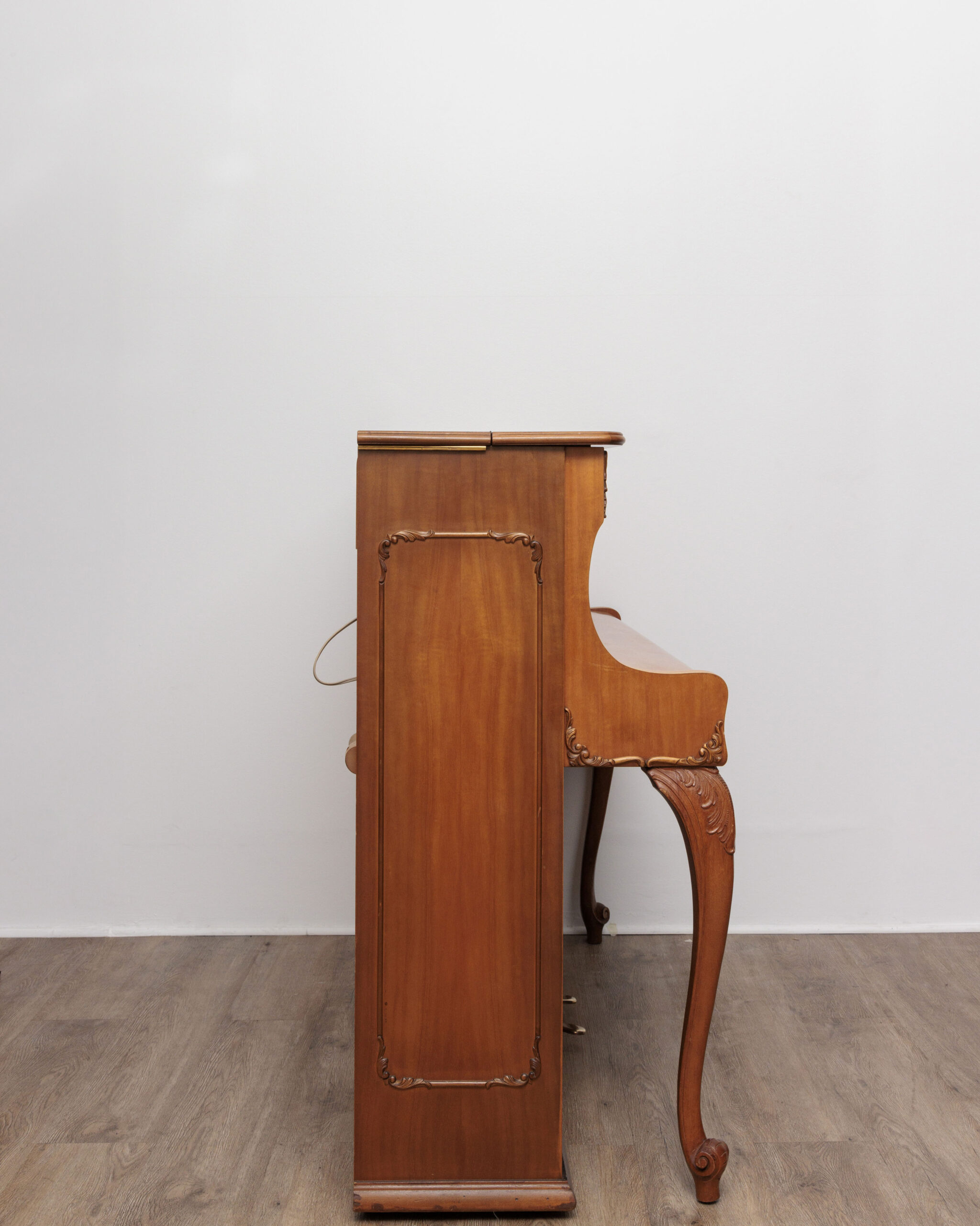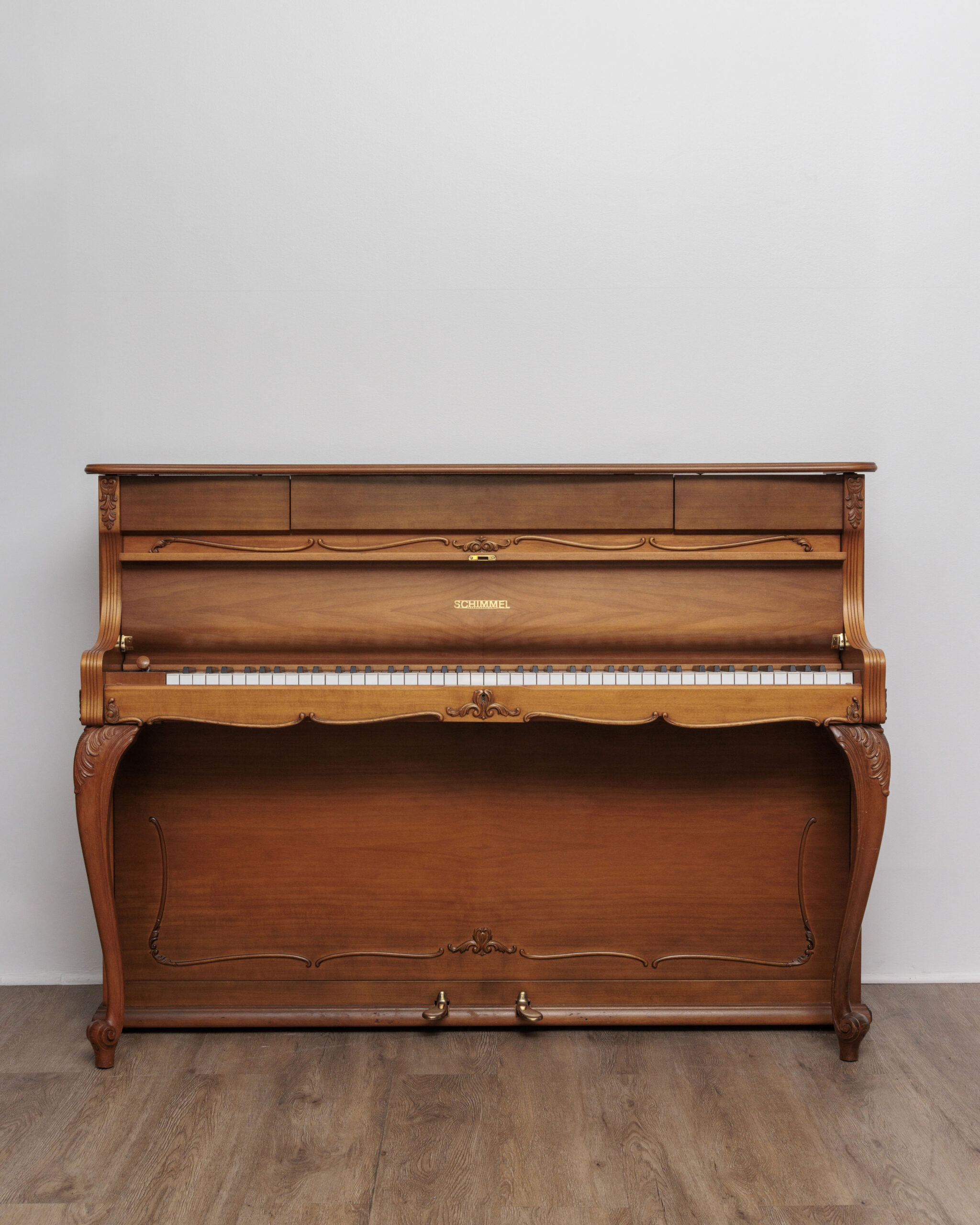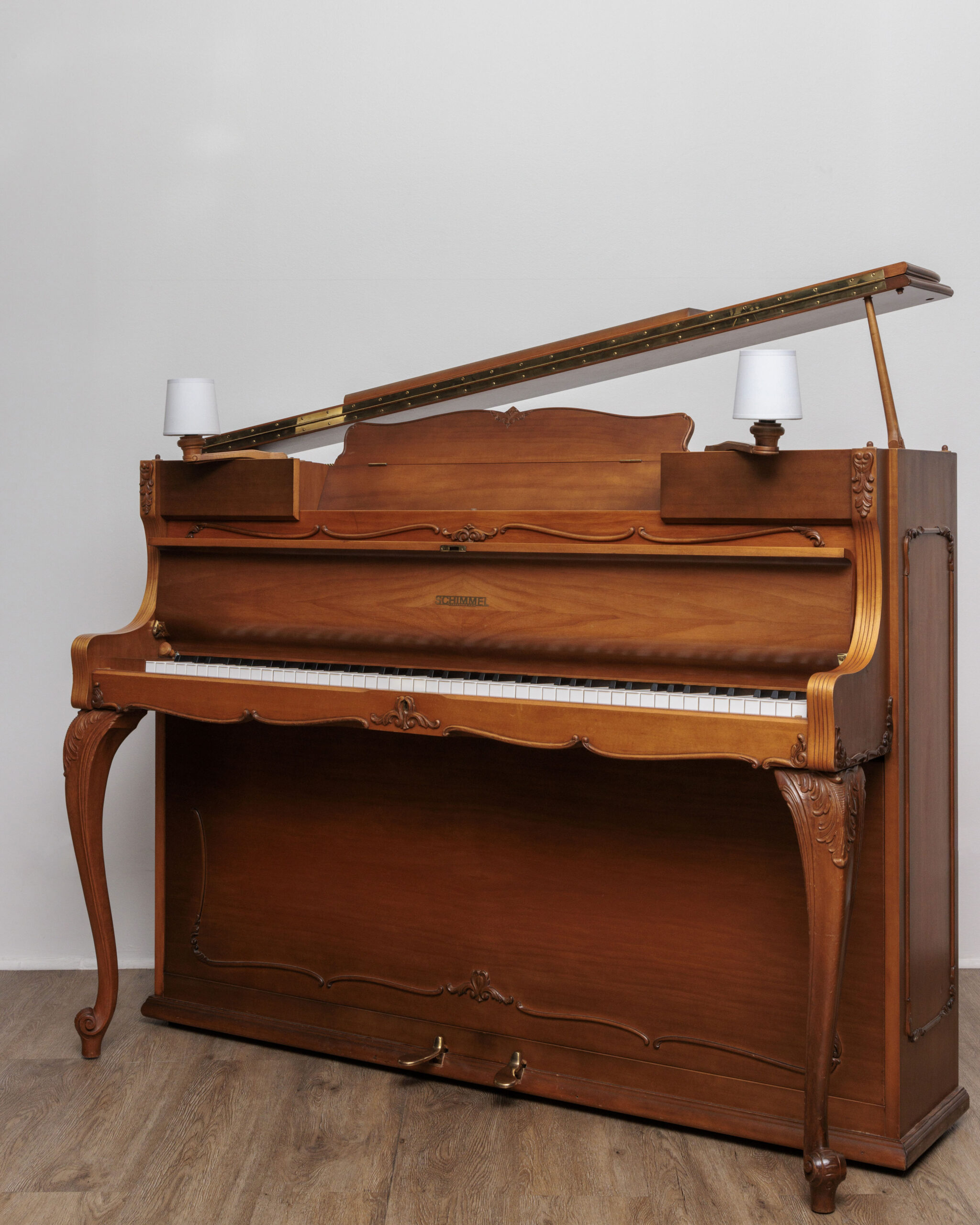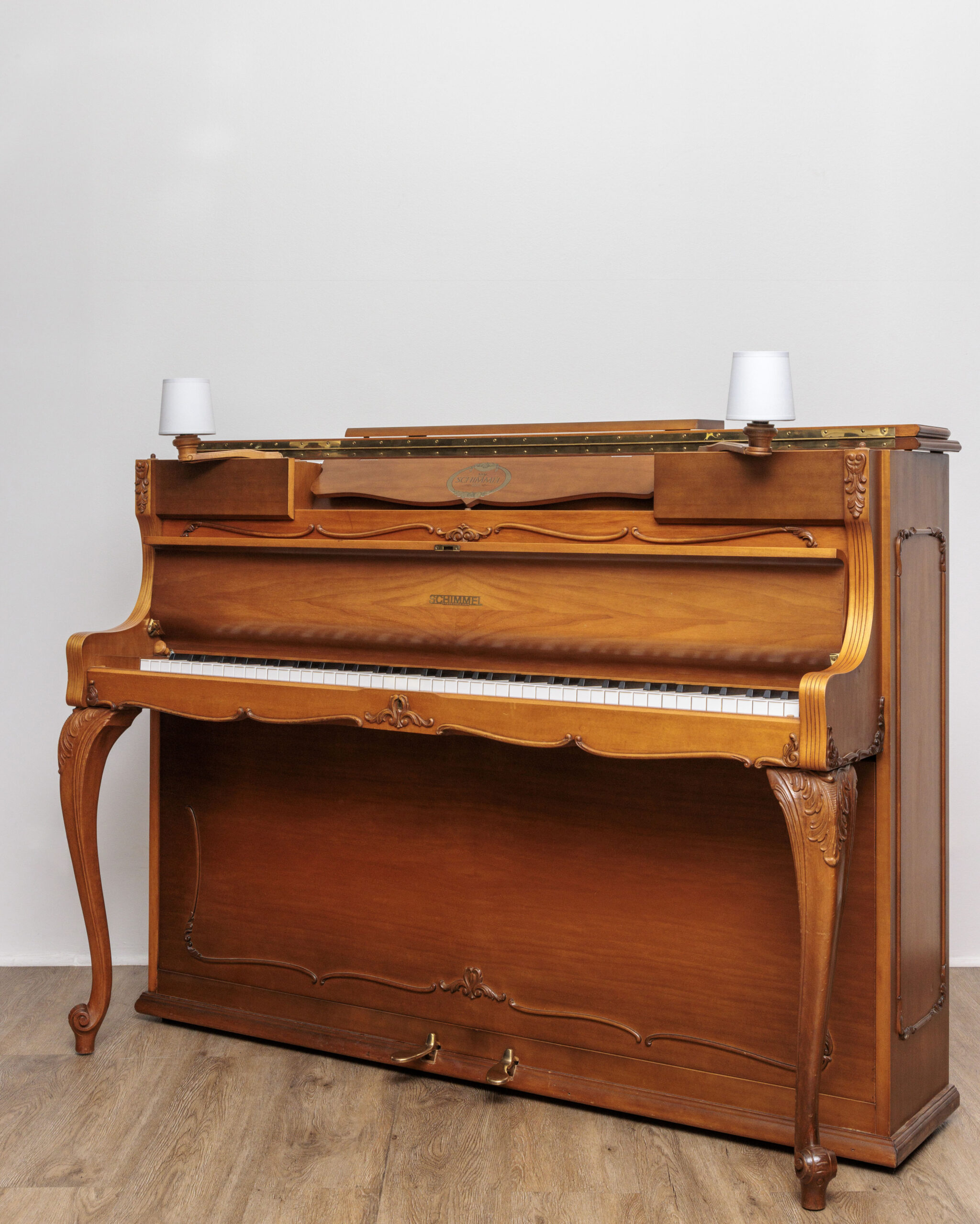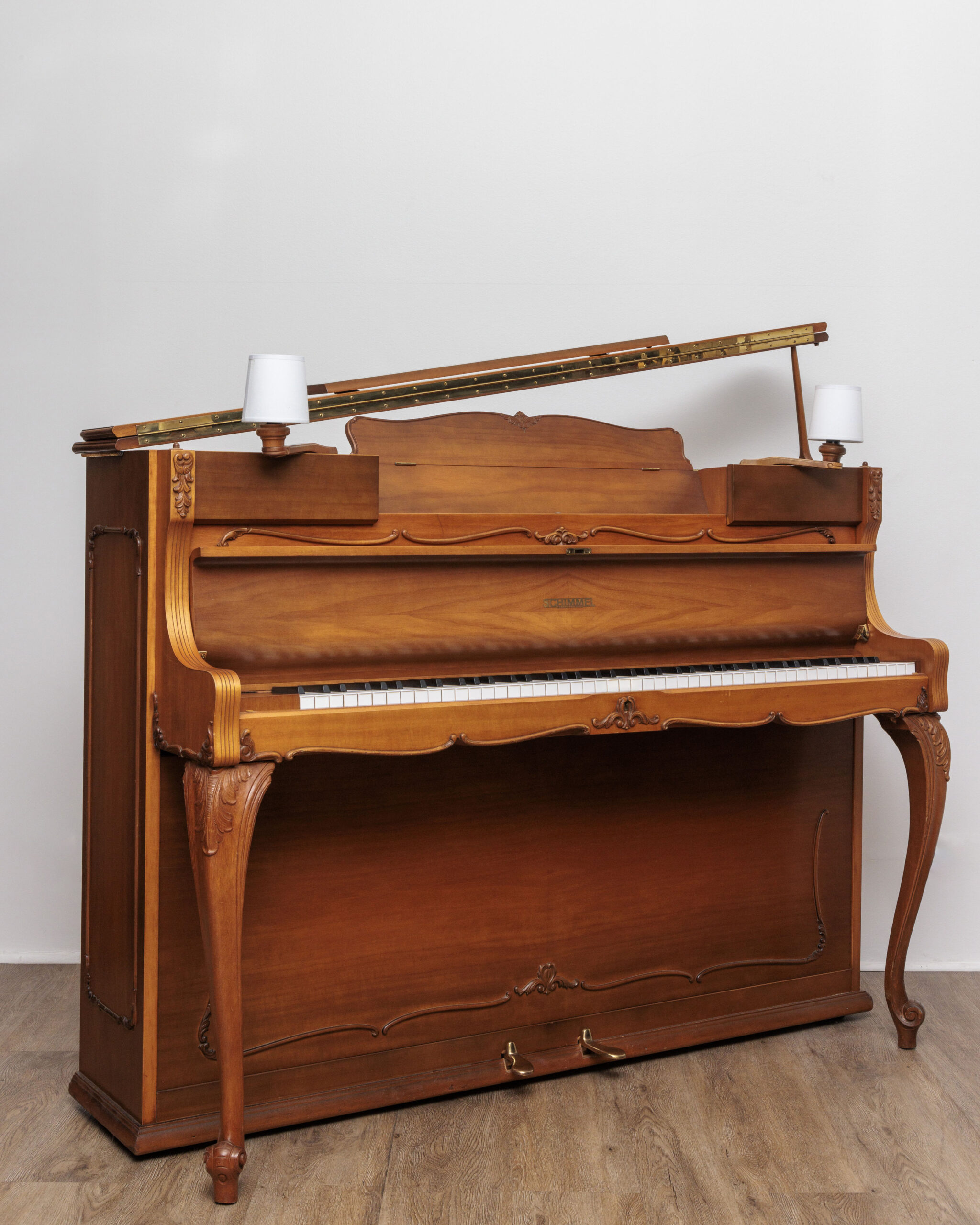 COMME NEUF, UNE PIÈCE UNIQUE ! une occasion dans le pur style Louix XV pleine de surprises et compartiments secrets ! ce piano schimmel à lampes a été fabriqué dans la fameuse usine allemande de braunschweig. en effet, la qualité des matériaux, de la conception et de la fabrication apparaît indéniablement dans le moindre détail et réjouit l’oeil autant que l’oreille. on retrouve sur ce magnifique modèle les matériaux chers aux marques allemandes, notamment la fameuse mécanique renner assurant d’emblée au pianiste même peu aguerri un contrôle aisé du clavier grâce à une sensation bien réelle de disposer d’une palette de nuances rarement vue sur un piano. la densité acoustique de ce modèle est le second pendant de la perfection de l’ensemble. les basses sont incroyablement généreuses même dans le murmure, les médiums sont à la fois amples et bien définis et les aiguës perlées sans jamais saturer. le technicien chargé de sa remise en état a effectué un réglage poussé du clavier et de la mécanique, de nombreux accords de remise au diapason et de stabilisation, une égalisation, une harmonisation pour enfin retrouver toutes les qualités originelles de l’instrument. le meuble unique a conservé un placage impeccable et représente un vrai potentiel décoratif, surtout après les soins attentifs et millimétrés pratiqués par notre ébéniste sur toutes les parties de son meuble. ce merveilleux piano d’expression provoque de belles émotions, garantes d’un plaisir durable et d’un achat pérenne. le piano est garanti 10 ans, livré gratuitement partout en france avec un pack d’accessoires luxueux offert.