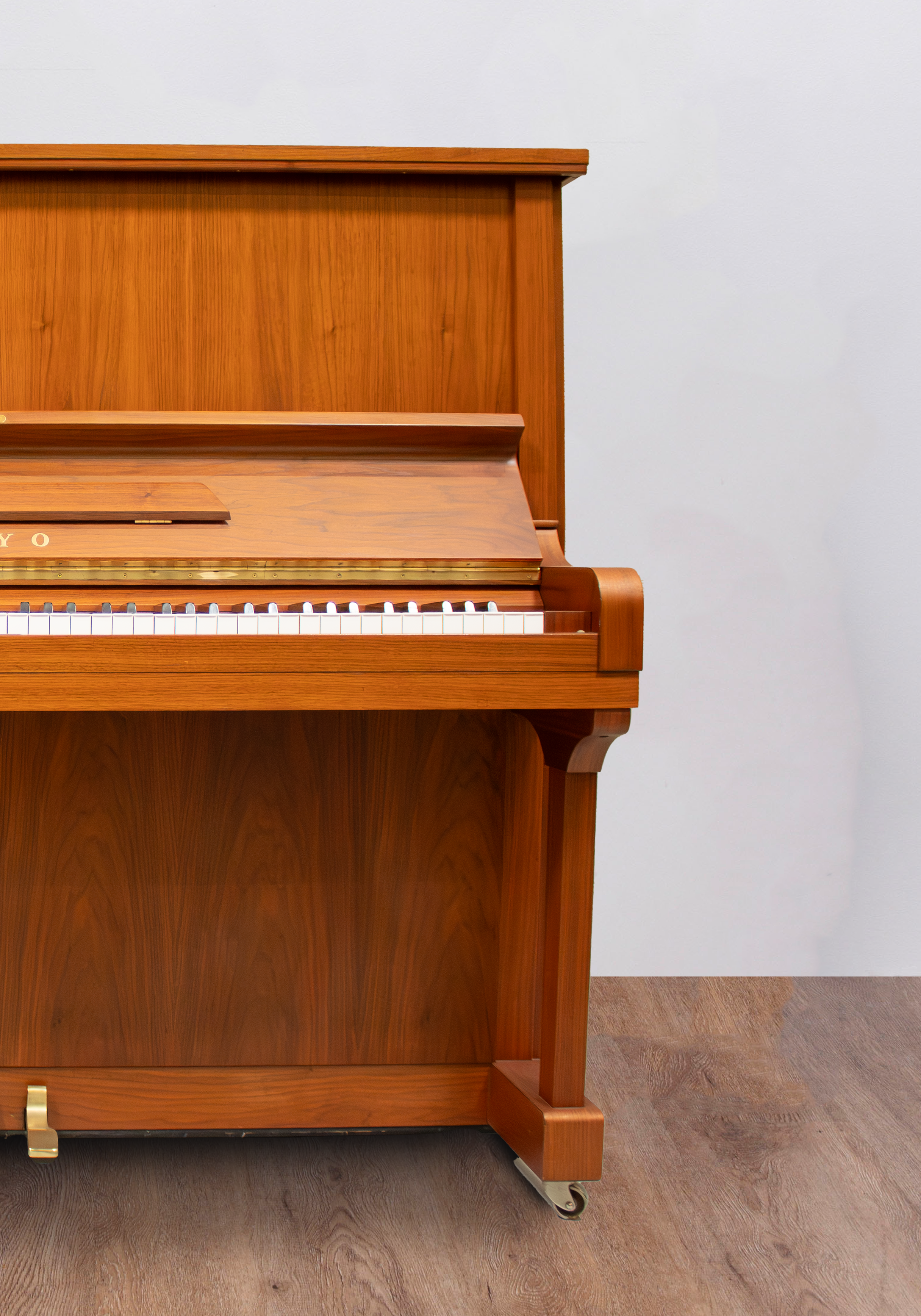 c’est l’un des plus petits pianos à queue actuels. à son actif, un meuble élégant et raffiné, soigné dans les moindres détails, une belle robe noyer blond et un encombrement minime. un compagnon agréable pour les pianistes amateurs soucieux d’enrichir leur intérieur d’un instrument dont le meuble n’a presque rien à envier aux plus beaux pianos de concert… hormis sa taille ! produit par le concepteur allemand de renommée mondiale, klaus fenner ce piano diffuse une sonorité chaude à l’européenne, en combinant les matériaux les plus fins d’origine allemande et coréenne avec un grand art ; un soin particulier a été porté sur la conception de la structure harmonique, on retrouve ainsi de nombreux détails, gage d’une qualité certaine, comme un chevalet suspendu pour plus d’ampleur harmonique et un vernis de table cellulosique pour une plus grande résistance aux variations thermiques et hygrométriques, le sommier est fabriqué en multiplis de hêtre assurant la stabilité de l’ensemble. la sonorité d’origine est plutôt ronde et permet une plus grande polyvalence qu’à l’accoutumée sur ce type d’instruments ; il se révèle équilibré et dévoile un timbre coloré, sans jamais s’avérer percussif ou métallique comme c’est souvent le cas pour les pianos de fabrication coréenne. compagnon fidèle pour le travail intensif grâce à un clavier léger ne fatiguant pas trop les doigts, il se prête au jeu comme appelle la joie, à pianoter comme à écouter. après le travail conséquent et de grande qualité de notre ébéniste, aujourd’hui le meuble ne souffre d’aucun défaut de finition et présente même de très belles qualités esthétiques. les chanfreins et les arrondis sont bien finis et les vernis polyester irréprochables. le vernis brillant est parfait et présente un aspect soyeux sous les doigts après les lustrages opérés. nulle trace de frottement n’est à déplorer et l’élégance du meuble aucunement ternie, à l’intar d’un piano neuf. mécaniquement, le cumul de heures de jeu n’a pas réussi à provoquer une usure visible et des réglables successifs auront suffi à redonner sa netteté originelle à l’ensemble. prêt à repartir pour de nombreuses années, cet agréable piano d’expression n’attend plus qu’un coup de foudre, le vôtre. il est garanti 10 ans et livré partout en France avec son pack d’accessoires complet.