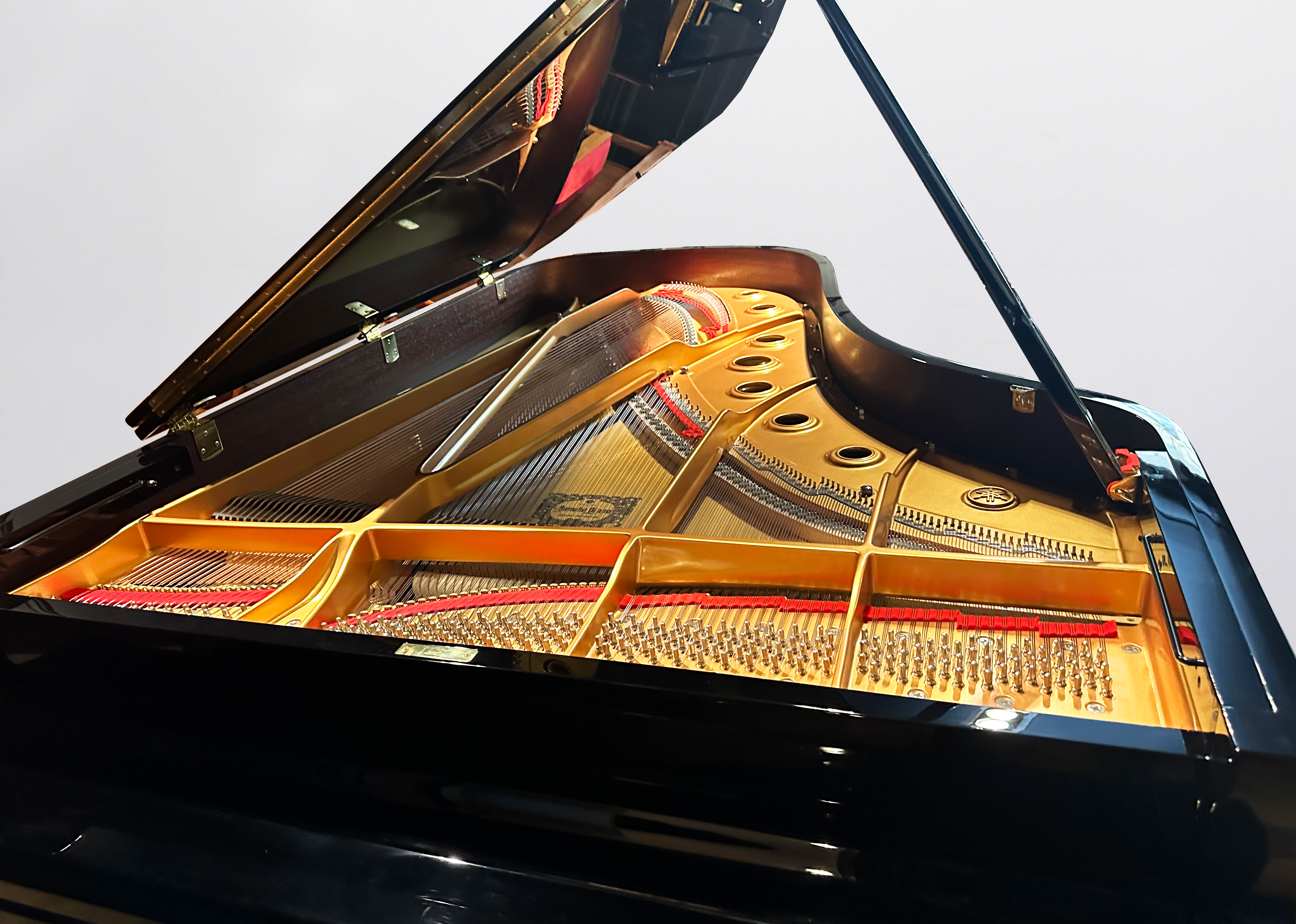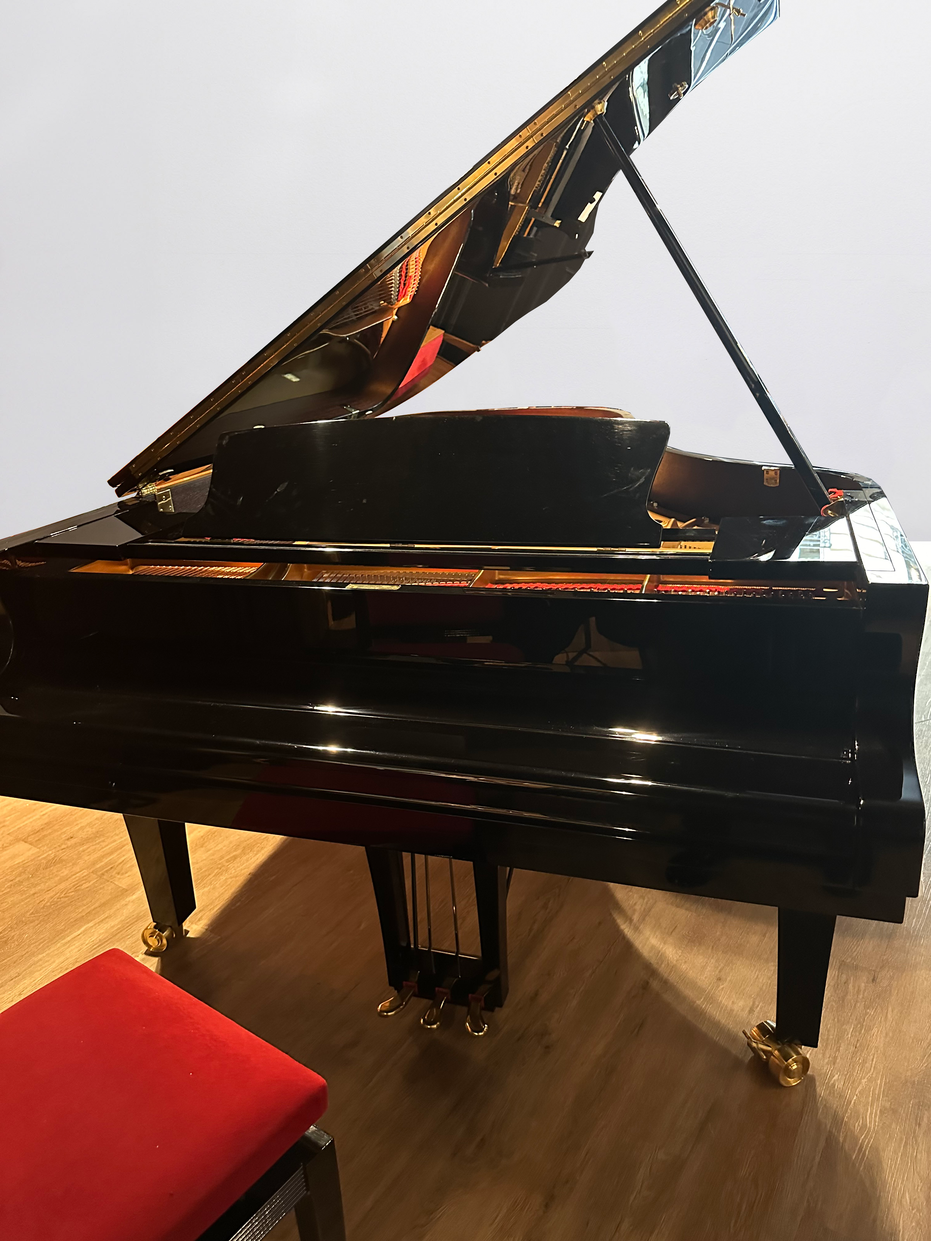 Le fleuron de la production japonaise peut enfin prétendre à concurrencer en subtilité les pianos européens sur ce modèle issu de la fabrication artisanale de la marque, productrice outre la série SX des CF en pianos à queue. le modèle se décline sur le cadre métallique du modèle C7. pour le reste, tout a donné lieu à des spécifications techniques particulières. ici, une qualité indéniable de matériaux tels des têtes de marteaux en noyer massif, une conception et une réalisation tirées vers le haut par un cahier des charges exigeant comme le montre la présence d’agrafes pour mieux maintenir les chevilles et assurer une parfaite tenue d’accord, permettent une véritable homogénéité de production et une vraie polyvalence d’interprétation. la densité des feutres de marteaux a été révisée à la baisse et permet un impact beaucoup plus moelleux sur les cordes, faisant gagner aux registres grave et médium une profondeur inhabituelle pour la marque. une très bonne qualité de transmission vibratoire se fait sentir à travers l’utilisation d’essences de bois mieux sélectionnées et séchées telles le hêtre ou l’épicéa. un balancier de touche assez court procure encore ce toucher fluide fidèle à l’esprit de la marque, que l’on peut vraiment apprécier à sa juste valeur car on est moins gêné par cette légèreté plus facilement domptable grâce à la tessiture mesurée de l’ensemble. le meuble reprenant tous les principes de l’élégance germanique est très bien fini.