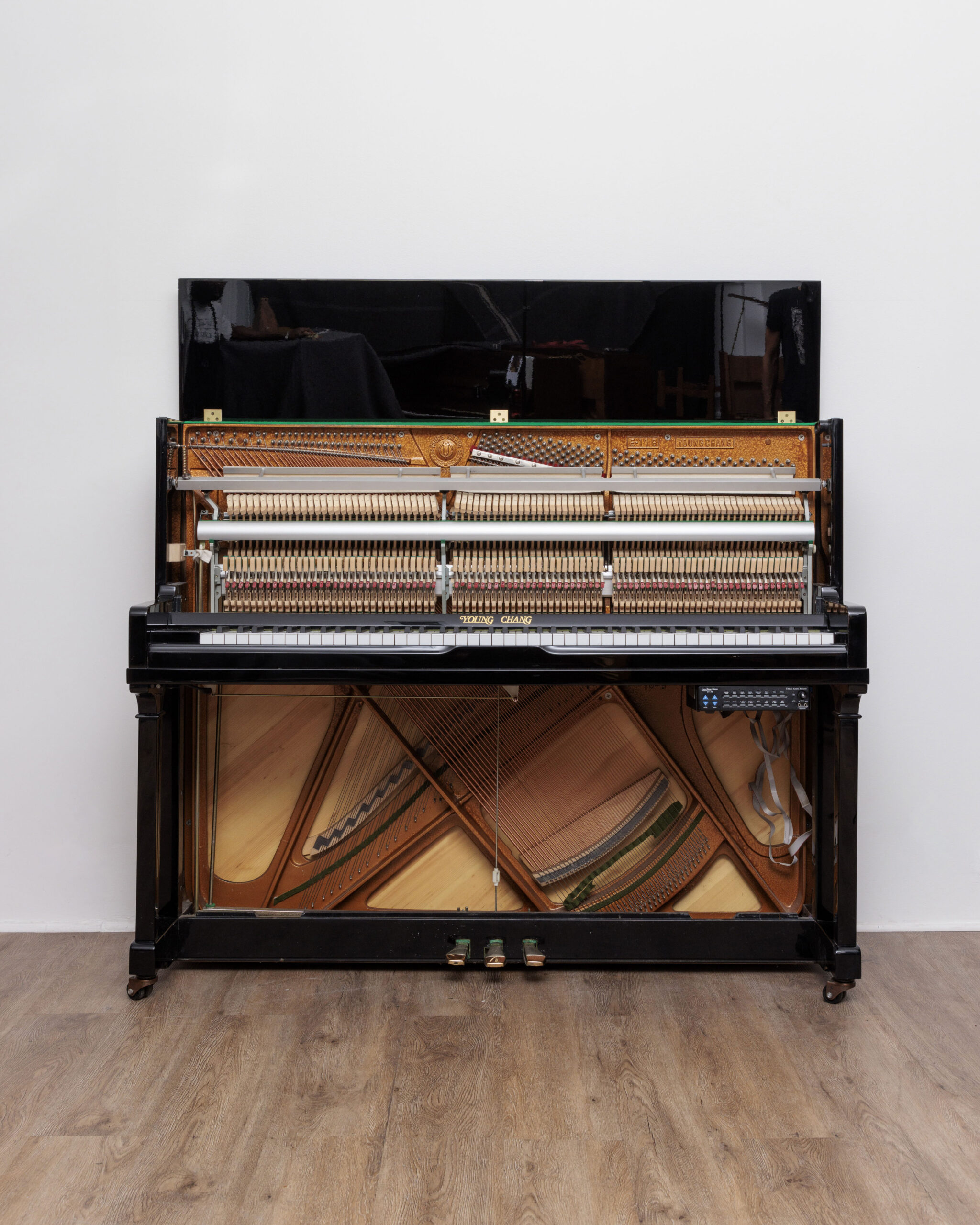 Le young chang 118 est célèbre pour avoir représenté l’un des meilleurs rapports qualité/prix des pianos contemporains comme pour ses finitions délicates. sa ligne élégante, toute en courbes et sa finition noir de jais font merveille pour qui recherche un bel élément de décoration doublé d’un instrument fort honorable. ses caractéristiques pianistiques sont typiquement asiatiques, toucher léger et sonorité claire même si cet exemplaire ne souffre pas d’une tessiture radicalement métallique et propose plus de rondeur qu’à l’accoutumée. parfait piano d’expression d’entrée de gamme au budget idéalement étudié pour débutant jeune ou moins jeune, il permet un bon apprentissage de la technique sans contrainte et se prête facilement aux prémices de l’expression. le vernis noir brillant est très parfait et présente un aspect soyeux sous les doigts après le lustrage opéré par notre ébéniste. plus aucune trace de frottement ne se laisse voir et l’élégance du meuble n’est aucunement ternie. mécaniquement, le cumul de heures de jeu n’a pas réussi à provoquer une usure visible et seul un bon réglage a suffi à redonner sa netteté originelle à l’ensemble. prêt à repartir pour de nombreuses années, cet agréable piano d’expression n’attend plus qu’un coup de foudre, le vôtre. il est garanti 10 ans et livré partout en France avec son pack d’accessoires complet.