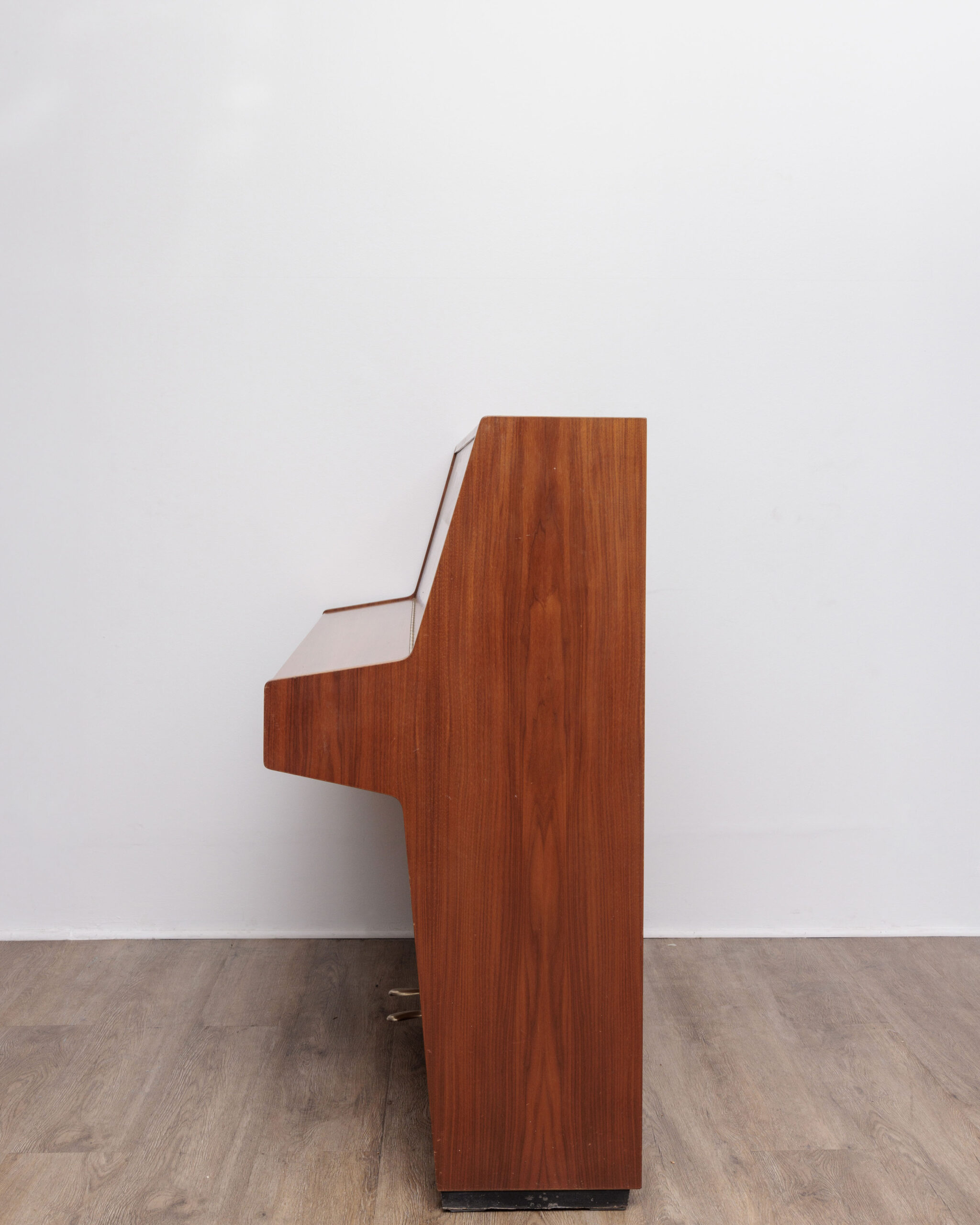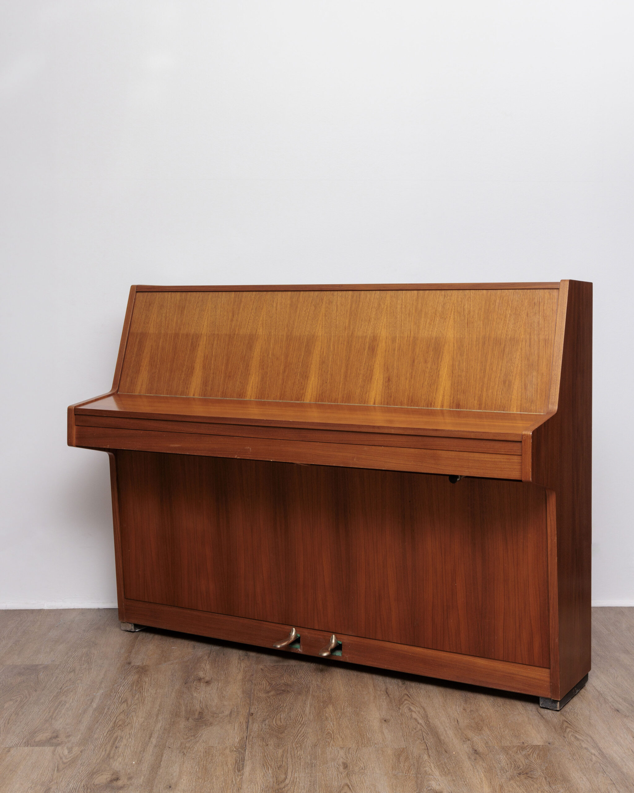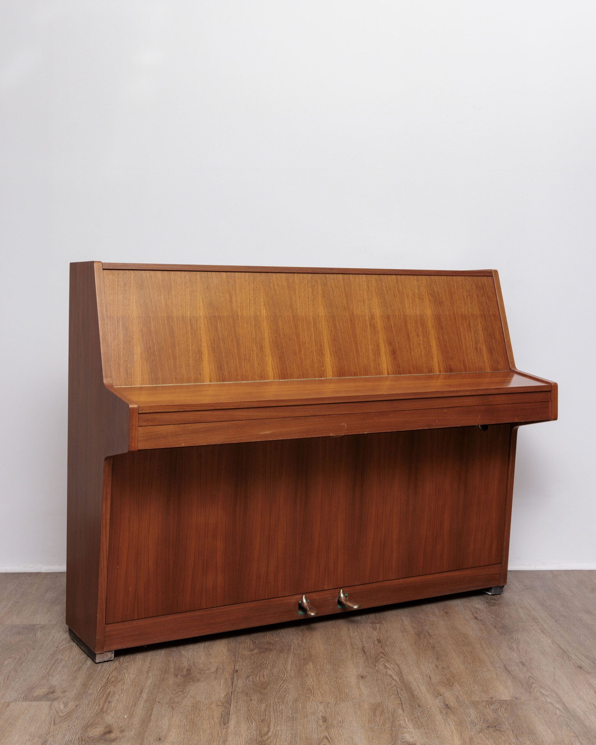 ce joli piano allemand dont la marque a été rachetée par le groupe bechstein, produit désormais en asie, fut fabriqué en allemagne en 1979 et présente un excellent état de conservation tant intérieur qu’extérieur. le placage noyer satiné est de toute beauté avec ses effets fauves sur toutes les parties, exempt de toute trace de choc ou de rayures. le diagnostic technique nous indique que le piano a été joué modérément et parfaitement stocké. on y trouve donc sans surprise des feutres peu marqués et très propres, sans traces d’usure assurant au piano une durée de vie encore très longue. le clavier est ferme mais sans excès, garant d’un bon travail des doigts pour les débutants. la sonorité est européenne, plutôt veloutée sans être étouffée. très polyvalent, précis et rapide sous les doigts, il conviendra parfaitement à un enfant débutant. les réglages clavier/mécanique, l’accord, l’harmonisation ont été faits dans le respect des cotes d’usine et de la personnalité de cette production. le meuble n’a nécessité qu’un léger ponçage centré autour du couvercle supérieur et du cylindre pour retrouver une belle profondeur de teinte et un parfait soyeux de surface. proposé à un tarif défiant toute concurrence lorsqu’on le compare aux pianos neufs de même prix actuels, tous chinois ou indonésiens et bien plus modestes musicalement, il saura combler les attentes d’un amateur pour ses premières années d’étude pianistique. il est garanti 10 ans, comme tous nos pianos, et livré partout en france avec ses accessoires offerts.